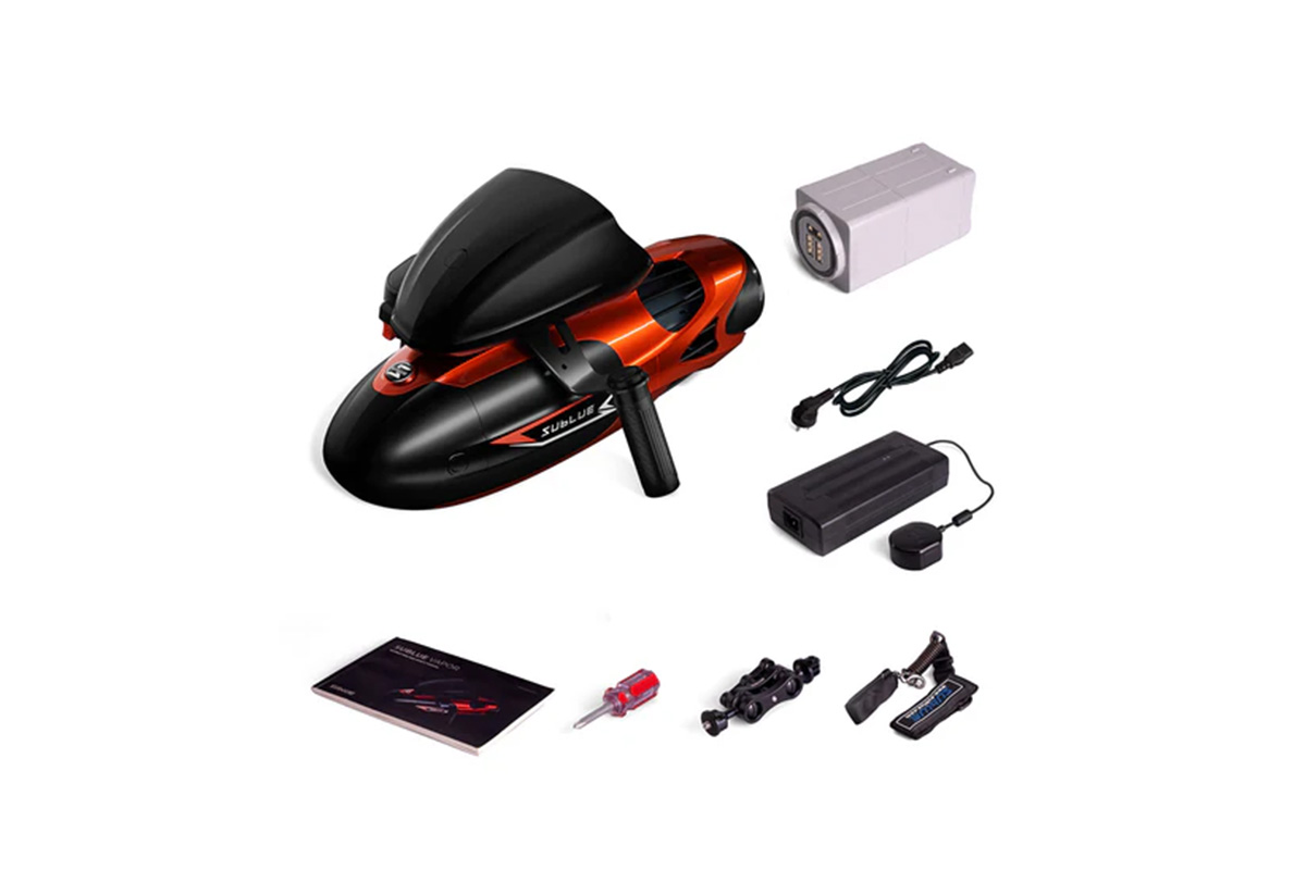 The Sublue Vapor is a high-performance underwater scooter delivering unmatched speed and power for professional divers and adventure enthusiasts. Built for extreme conditions, it combines speed, endurance, and precision in one sleek machine.